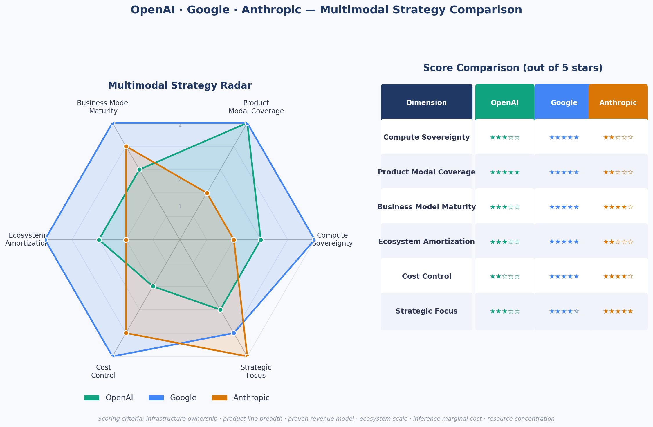 Figure: OpenAI · Google · Anthropic — Multimodal Strategy Comparison