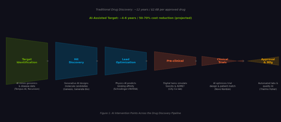 Figure 3. AI intervention points across the drug discovery pipeline, with representative companies at each stage.